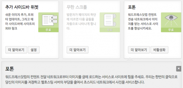 그나마 워드프레스 젯팩 플러그인의 포톤 기능을 써서 이미지 관련 트래픽이 거의 없는 편인데도 이렇다. 포톤 기능은 이미지를 워드프레스닷컴의 CDN에 자동으로 올리고 연결시켜준다. (이미지 용량이 일정 이상이거나 파일명이 한글일 때 제대로 연결시켜주지 못하긴 하지만 유용하다.)