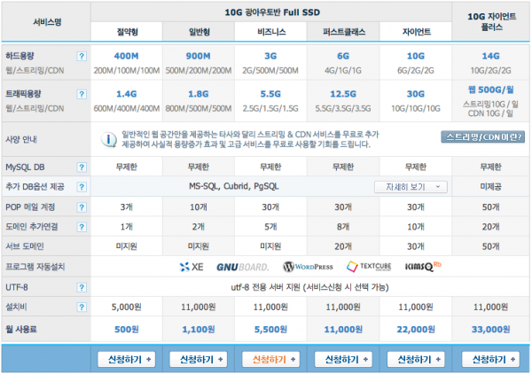 그래서 지금 생각중인 게 호스팅거로 옮기는 것이다. 이곳은 무료 상품과 프리미엄(월 3,000원부터), 기업용(월 7,300원부터)이 있는데 디스크 용량과 트래픽도 충분히 준다고 한다. 걱정인 것은 기본적으로 해외 서비스여서 속도가 느리지 않을까 싶다.