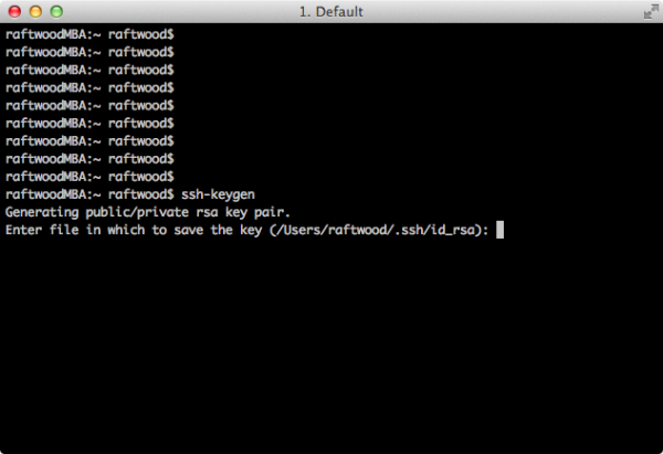 우선 SSH 키를 생성해야 한다. [응용 프로그램-유틸리티] 디렉토리에서 ‘터미널’을 실행하고 아래의 명령을 입력한다.