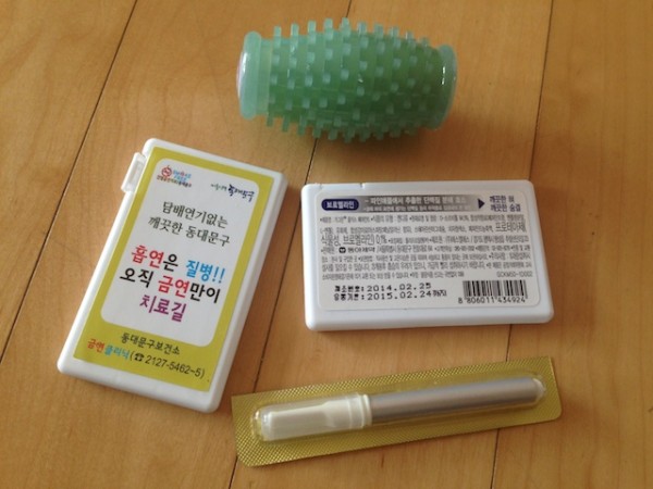 내 경우는 앞서 말한 것처럼 중독 지수가 높은 편은 아니어서 20을 2주, 10을 2주 정도 쓰기로 했다. 그리고 2주마다 금연 클리닉을 방문하기로 했다. 니코틴 패치 외에도 금연 안내 책자, 손 지압기, 쿨키스(은단 대체품), 더미 담배 등도 줬다.