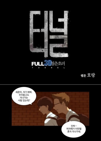 “옥수역 귀신”, “마성터널 귀신” 등 인터랙티브 공포 웹툰으로 잘 알려진 호랑 작가가 영화 “터널3D”의 홍보 웹툰을 발표하여 화제다. 특유의 장기인 플래시 효과와 강렬한 사운드를 잘 조합하여 공포감을 극대화했다고 하는데 아직 못 봤다. (…)