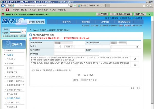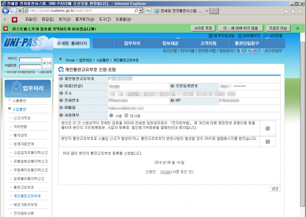 이제 개인통관고유부호가 포함된 신청 결과를 볼 수 있다. 앞으로 해외 직구를 할 땐 이 부호를 사용하면 된다. 액티브엑스와 공인인증서의 벽만 넘으면 전체적으로는 아주 간단한 과정이다.