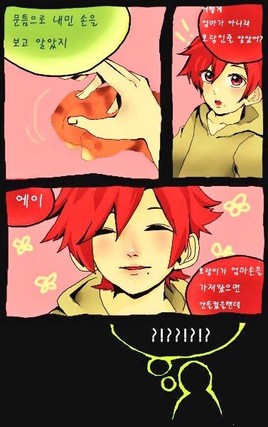(2014-10-20 추가) 아래는 트위터의 @shay_rune 님께서 그려주신 것이다. ^^ 트윗을 보면 “둥차 은찬이 어릴 때로 연성”이라고 되어 있다. 안 보는 작품이어서 몰랐는데 웹툰 “둥굴레차!”의 캐릭터라고. 역시 이 자리들 빌어 감사드린다.