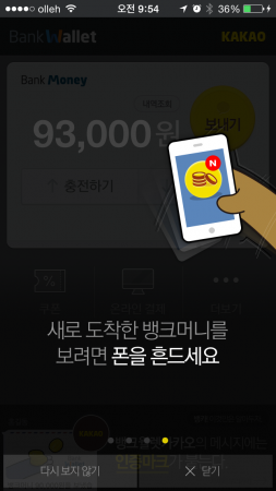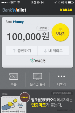 뱅크월렛 카카오가 출시되었다. 뱅크월렛 카카오는 다음카카오와 금융결제원이 16개 은행과 공동으로 서비스를 시작했다. 실제 모바일 앱은 아이폰, 안드로이드 모두 금융결제원 계정으로 올라갔다.