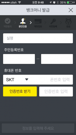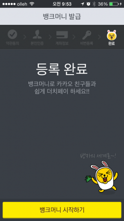 다음카카오의 전자지갑 서비스로 출시 전부터 주목을 받아온 뱅크월렛 카카오를 사용해 보았다. 캡쳐 화면은 전 과정을 담은 것은 아니며 일부 과정은 생략했다.
