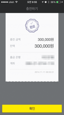 OTP 번호를 입력하면 끝…이 역시나 아니다. 비밀번호를 다시 입력하라고 한다. 계좌 비밀번호, 지갑 비밀번호, 뱅크머니 핀의 숫자에 유사성이 있으면 에러가 난다. 안 그래도 외워야 할 숫자가 많은 이들에게는 꽤 귀찮은 절차일 수도 있겠다.